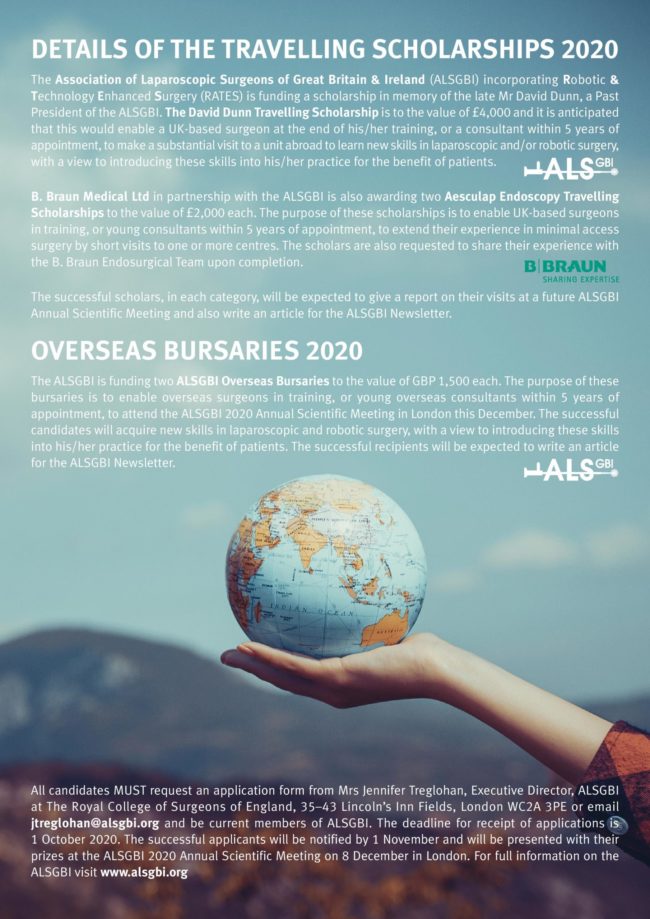 Travelling Scholarships and Bursaries for 2020 – application window now open NewsBy ALSGBI AdminJanuary 24, 2020Leave a comment