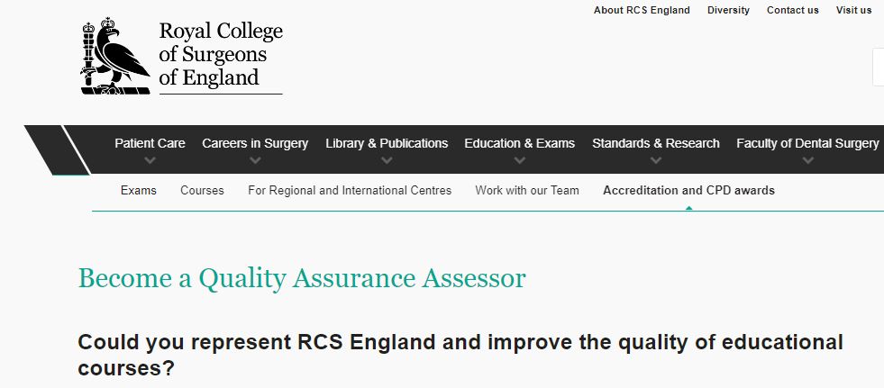 The RCS Eng are seeking Quality Assurance Assessors to assist with accreditation reviews of a number of national and international courses and surgical training providers.