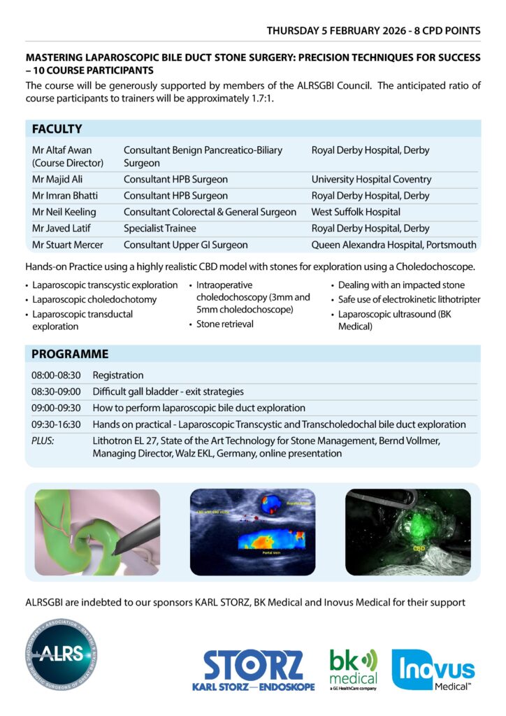 To receive your Certificate of Attendance, please complete the feedback form below Feedback Form "*" indicates required fields Name* First Last Hospital*Select one option for each itemThe course has been well organisedStrongly disagreeDisagreeNeutralAgreeStrongly agreeOverall, the training has been effectiveStrongly disagreeDisagreeNeutralAgreeStrongly agreeThe faculty have given useful support and feedbackStrongly disagreeDisagreeNeutralAgreeStrongly agreeThe catering & venue were of a high standardStrongly disagreeDisagreeNeutralAgreeStrongly agreeThe material/models provided have been of a good standardStrongly disagreeDisagreeNeutralAgreeStrongly agreeSufficient time has been given to complete each taskStrongly disagreeDisagreeNeutralAgreeStrongly agreeThe skills selected were at an appropriate level of difficultyStrongly disagreeDisagreeNeutralAgreeStrongly agreeI have become more confident in my bile duct surgical skillsStrongly disagreeDisagreeNeutralAgreeStrongly agreeI would recommend this course to othersStrongly disagreeDisagreeNeutralAgreeStrongly agreeDo you have any comments?What suggestions do you have for the next ALRSGBI Mastering Laparoscopic Bile Duct Stone Surgery course ?Testimonial If you are willing, please could you leave a testimonial for the ALRSGBI website or for marketing purposes? Testimonial Category: CoursesBy ALSGBI AdminMay 4, 2025Leave a comment Author: ALSGBI Admin Post navigationPreviousPrevious post:Intermediate Skills in Laparoscopic Surgery course, Bradford – 3rd & 4th February 2026NextNext post:Basic Surgical Skills course, Newcastle – 5th & 6th February 2026Related posts16th Laparoscopic Bile Duct Ultrasound Accreditation Course – 16th & 17th December 2026May 30, 202519th Laparoscopic Bile Duct Exploration Course – 18th & 19th November 2026May 28, 2025Advanced Upper GI Robotic Surgery course, Harrow – 7th & 8th November 2026May 27, 2025Advanced Robotic Colorectal Surgery course, Harrow – 7th & 8th October 2026May 24, 2025National Head & Neck course, Newcastle – 21st to 23rd September 2026May 23, 2025Robotic Right Hemicolectomy & Intracorporeal Anastomosis course, Harrow – 26th & 27th August 2026May 21, 2025