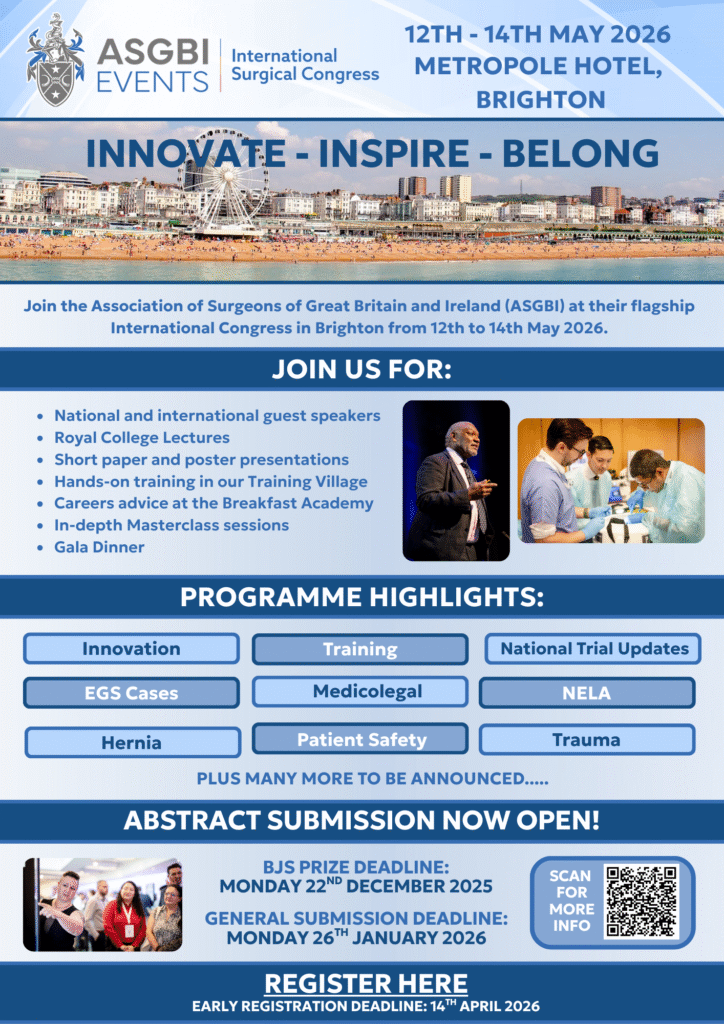 ASGBI International Surgical Congress, Brighton – 12th to 14th May 2026
